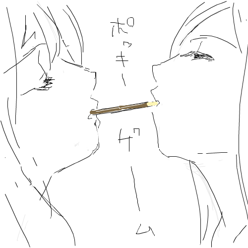 今、mixiの記憶スケッチというアプリにハマっております。お題を出されて15分で描きな!ってアプリなんですが、これがまたやり始めたら止まらないというか。「はい次!はい次!」とわんこ蕎麦みたいに食べt……いや、描いてます。わんこ蕎麦と違うのは、お題を出すボタンを押すのは自分だということですね。なかなか終わらないのも自業自得、というしょうもない話でございます。で、その中で「ヴィオラ」と「ポッキー」というお題が出ました。