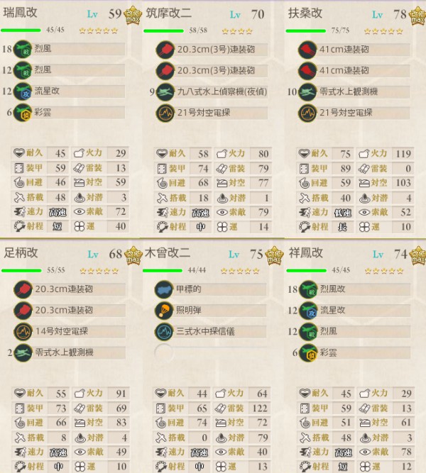 設計図を利用して改二へとバージョンアップ。わーい航巡が四隻になった!これで索敵の安心材料が増えました。ホント索敵値高いねとねちく…。利根姉さんのドヤ顔がたまりません。