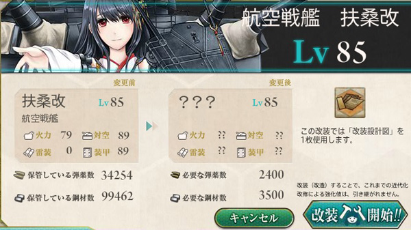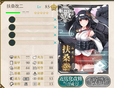 まずはこれよこれ。やったぜ扶桑姉様! 充分に練度があったので、満を持して改造です。