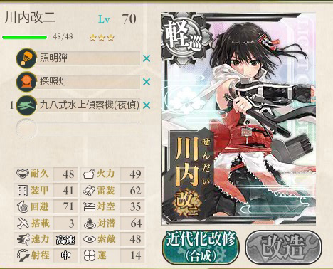 装備も夜戦。ホントこの子夜戦しかする気ない。でもそれがいいのです。