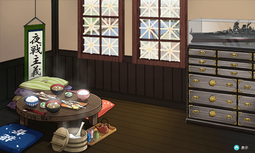 88000とお高く、家具コインが余り気味なカモノス艦隊と言えど、残コインは10kくらいになってしまいますた。まあでもよい買い物です。ただひとつ残念なのは、武蔵を秘書艦にしておくと、箪笥が全部隠れるってことですね。まあ、世の中は得てしてそんなものです。