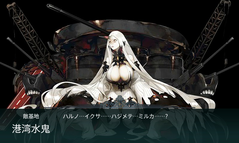 え、何このグレたニアリ港湾ちゃんは。迎撃前に何かあったのかしら…とうっかり心配になってしまいましたが…。うーん、見れば見るほど古き良きヤンキーのカチコミのようですね。木刀があれば完璧。いつも思いますけども、深海の絵師さんのデザインって、気分が高揚するくらい素敵です。