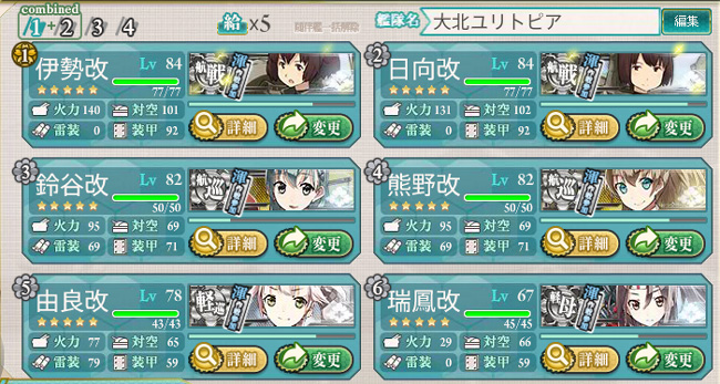 結果は、大破撤退なし、全てS勝利ストレートでクリア。ひゃっほい。やっぱり連合艦隊だと、被弾の心配が少なくなるのがいいですね。