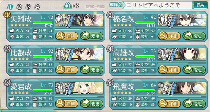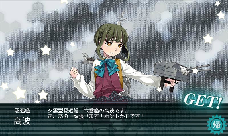 輸送艦が多く、一回軽巡おに子ちゃんに大破撤退させられたくらいで、スムーズに攻略出来ました。ラッキーです。