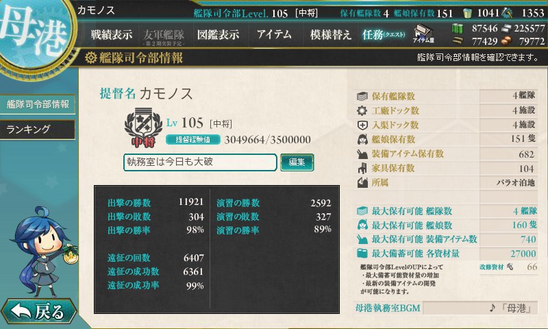 上記の通りの日誌を書いていたら、夜戦仮面に出撃を強要され「もう突破とかしたらマジ僥倖っていう感じで、みんなとりあえず出しきって闘ってくるように」と、八割方悟りの境地に至っておりました土曜日明け方4時。
